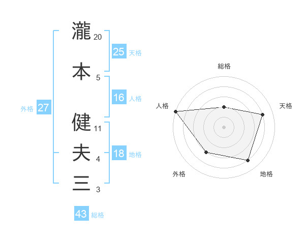 瀧本 健夫三さんの人格は16画の5点!