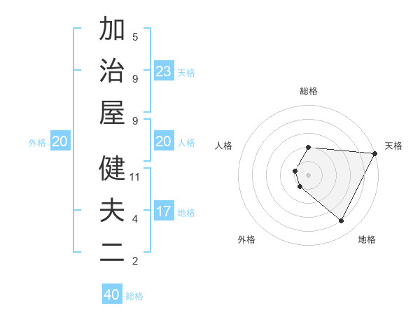 加治屋 健夫二さんを姓名の画数から五運を鑑定