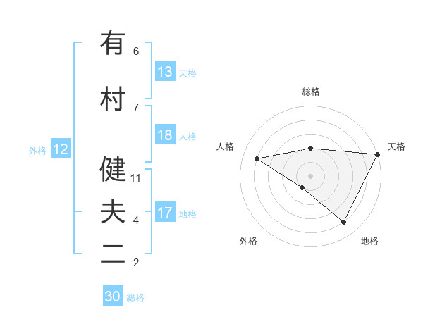 有村 健夫二さんの天格は13画の5点!