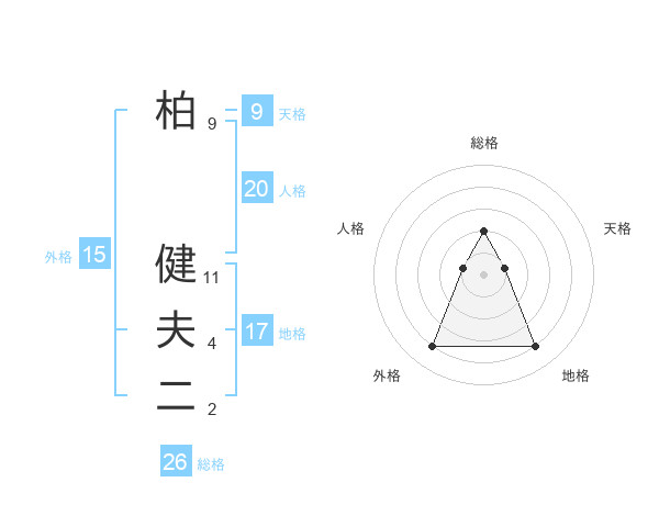 柏 健夫二さんを姓名の画数から五運を鑑定