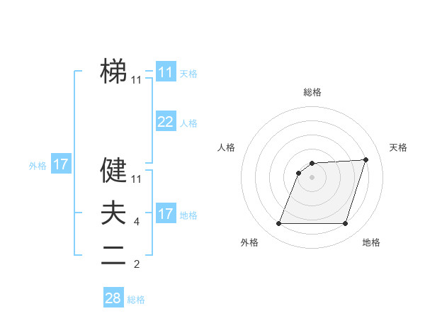 梯 健夫二さんの天格は11画の4点!