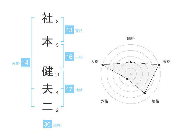 社本 健夫二さんの地格は17画の4点!