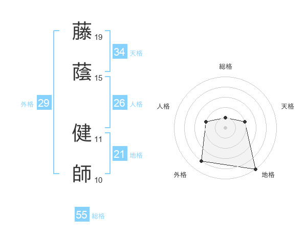 藤蔭 健師さんの外格は29画の4点!