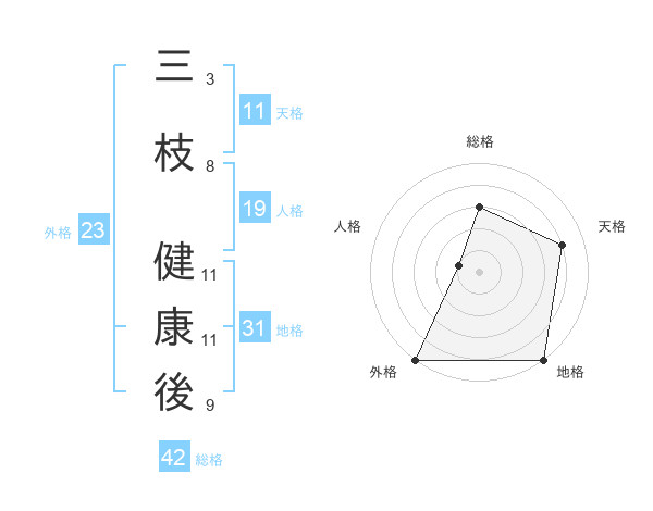三枝 健康後さんの外格は23画の5点!