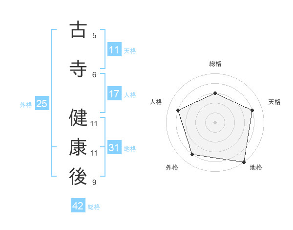 古寺 健康後さんを姓名の画数から五運を鑑定