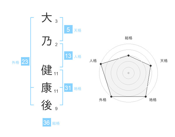 大乃 健康後さんの天格は5画の4点!