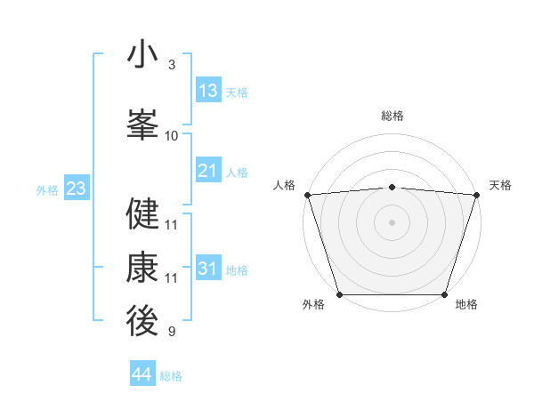 小峯 健康後さんを姓名の画数から五運を鑑定