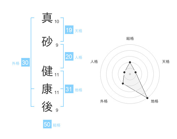真砂 健康後さんの地格は31画の5点!