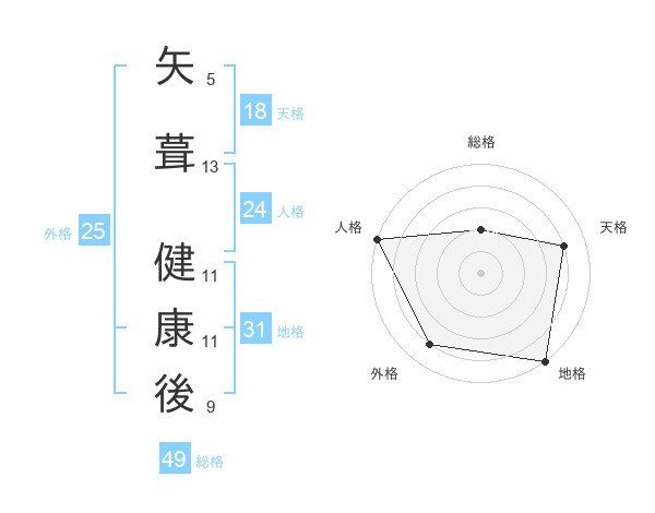 矢葺 健康後さんを姓名の画数から五運を鑑定