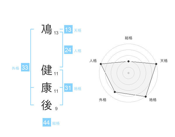 鳰 健康後さんの外格は33画の4点!