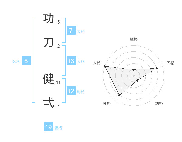 功刀 健弌さんの地格は12画の1点!