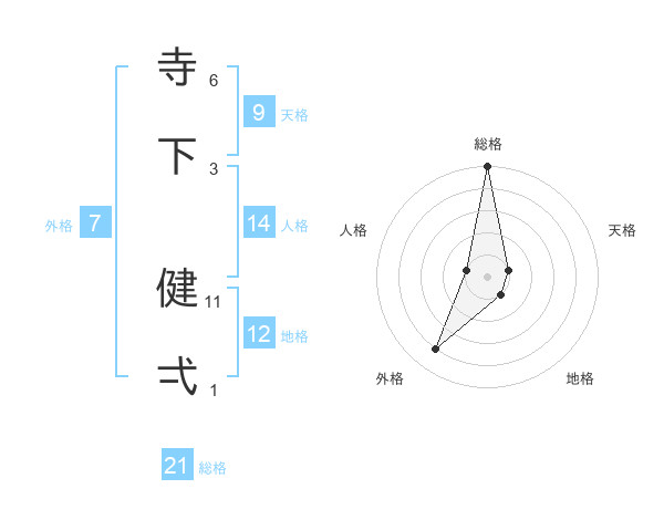 寺下 健弌さんの総格は21画の5点!