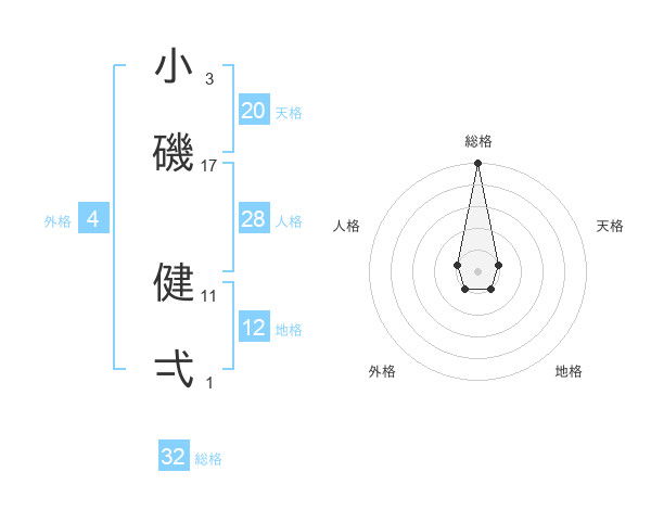 小磯 健弌さんの総格は32画の5点!