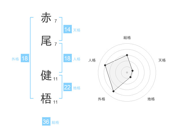 赤尾 健梧さんの総格は36画の3点!