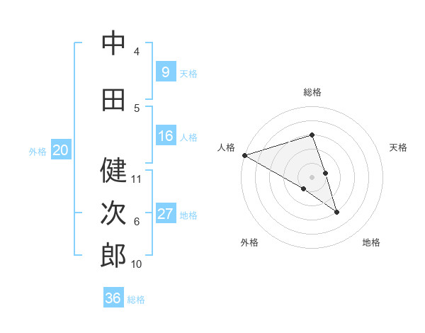 中田 健次郎さんの総格は36画の3点!