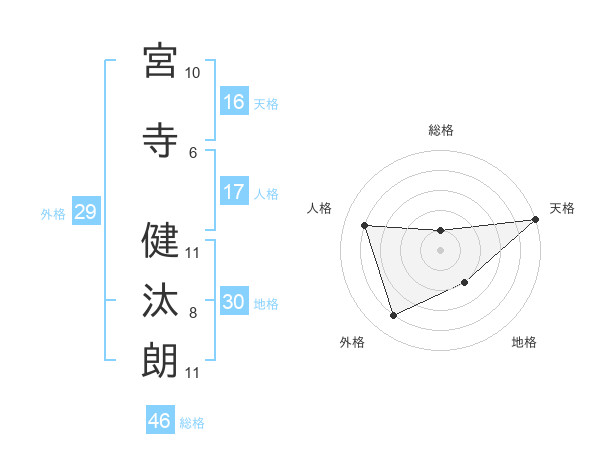 宮寺 健汰朗さんの天格は16画の5点!