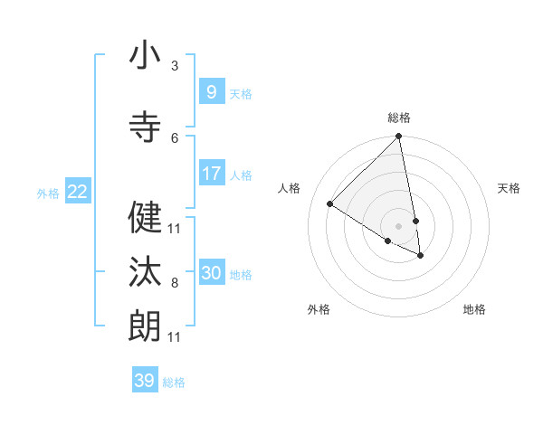 小寺 健汰朗さんの総格は39画の5点!