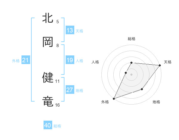 北岡 健竜さんを姓名の画数から五運を鑑定