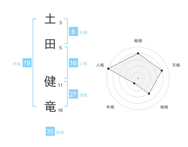 土田 健竜さんの総格は35画の4点!