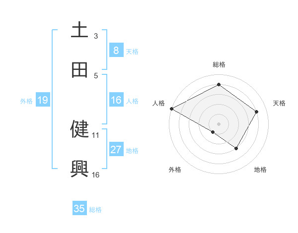 占い結果は姓名判断である以上、良い場合も悪い場合もありますが、決してお名前を誹謗中傷するものでなく、画数の自動計算によって得られたものです。また、本サイトの検索によって得られた鑑定結果で、第三者を誹謗中傷したり名誉を棄損するような行為を禁じます。