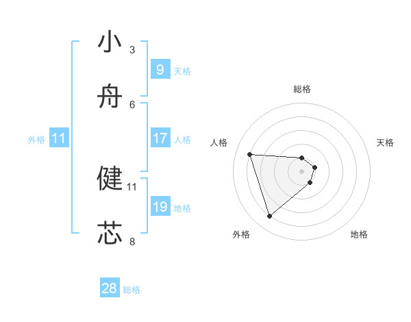 小舟 健芯さんの総格は28画の1点