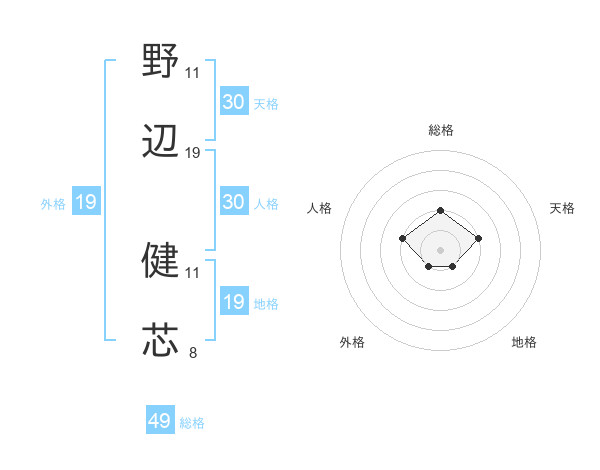 野辺 健芯さんを姓名の画数から五運を鑑定