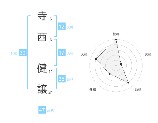 寺西 健譲さんの総格は47画の5点!