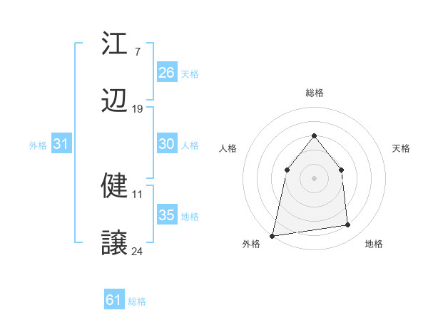 江辺 健譲さんを姓名の画数から五運を鑑定