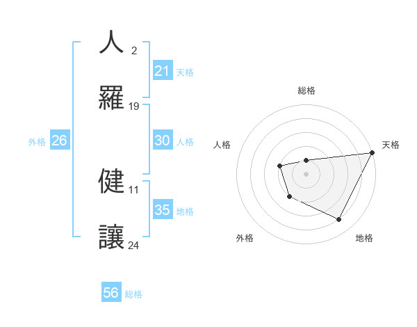 人羅 健讓さんを姓名の画数から五運を鑑定