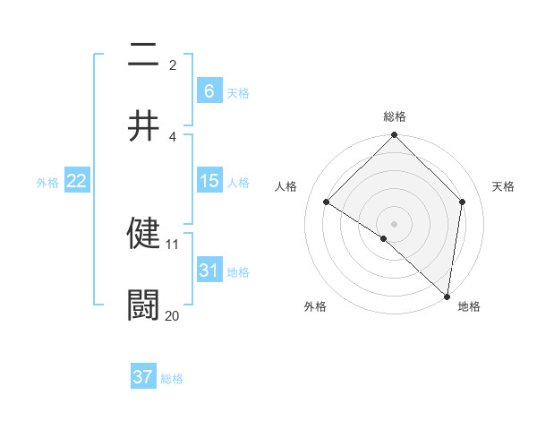 二井 健闘さんの総格は37画の5点!