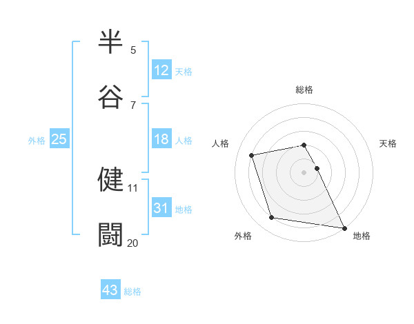 半谷 健闘さんの総格は43画の2点!