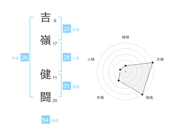 吉嶺 健闘さんの外格は26画の2点!