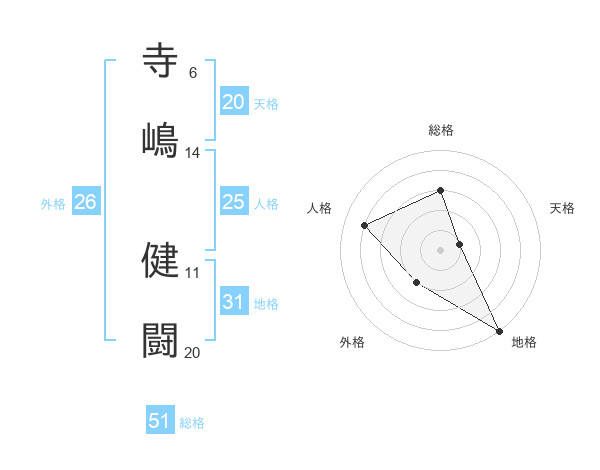 寺嶋 健闘さんの総格は51画の3点!