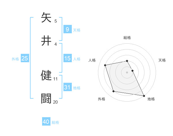 矢井 健闘さんの総格は40画の2点!