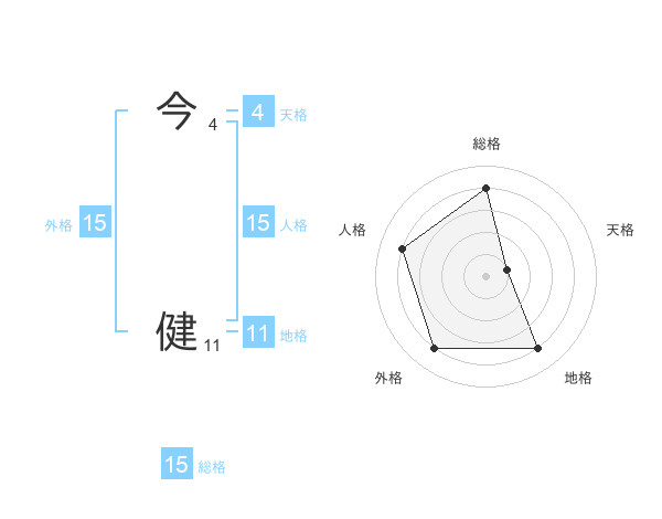今 健さんの外格は15画の4点!