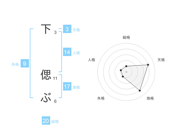 下 偲ぶさんを姓名の画数から五運を鑑定