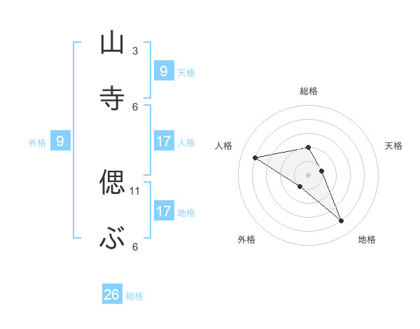 山寺 偲ぶさんの総格は26画の2点!