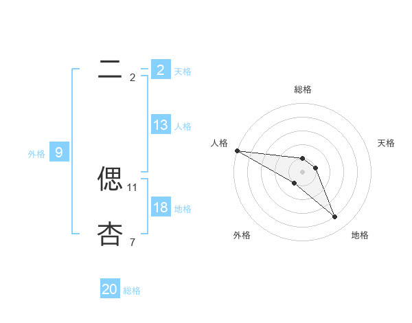 二 偲杏さんの総格は20画の1点!