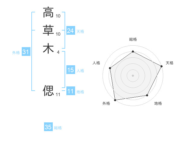 高草木 偲さんの総格は35画の4点!
