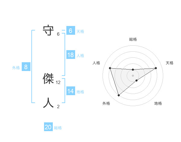 守 傑人さんの総格は20画の1点!