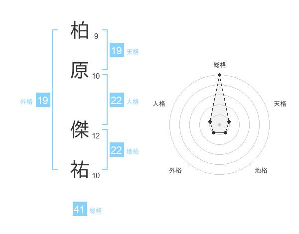 柏原 傑祐さんの総格は41画の5点!