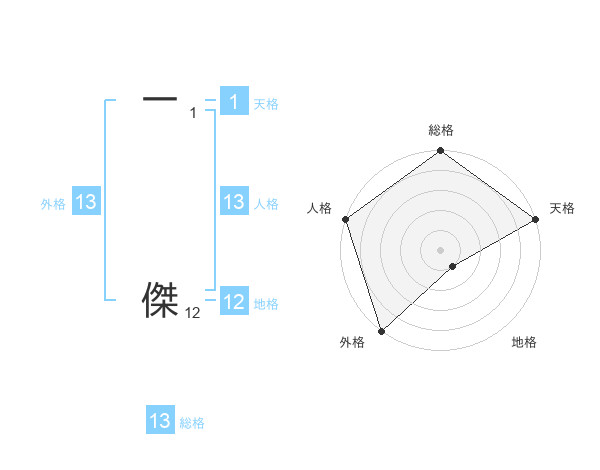 一 傑さんの総格は13画の5点!