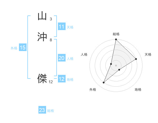 山沖 傑さんの総格は23画の5点!