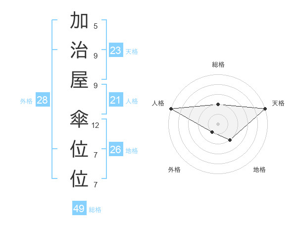 加治屋 傘位位さんを姓名の画数から五運を鑑定