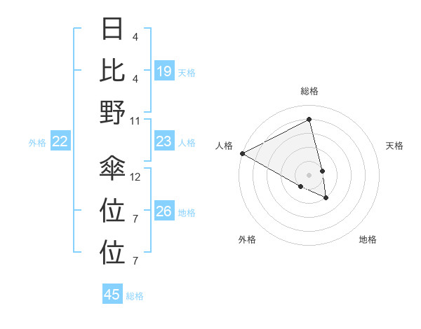 日比野 傘位位さんを姓名の画数から五運を鑑定