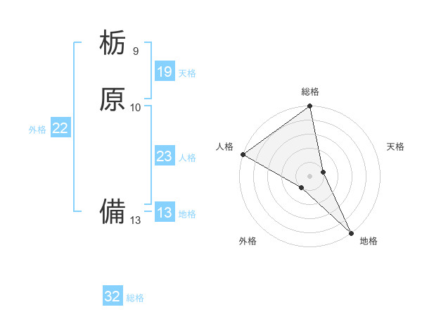 栃原 備さんの総格は32画の5点!