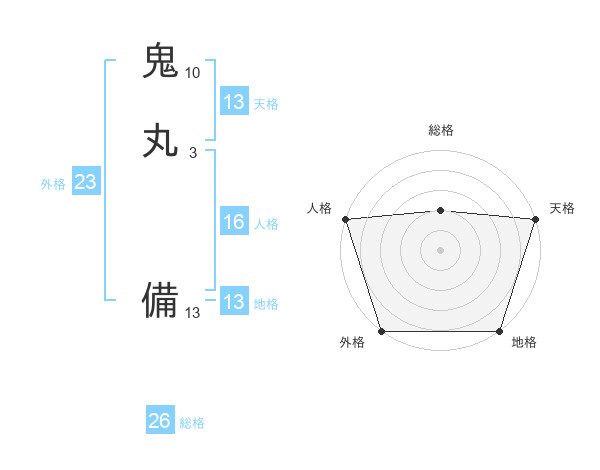 鬼丸 備さんを姓名の画数から五運を鑑定