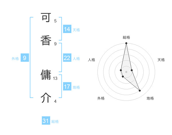 可香 傭介さんの総格は31画の5点!