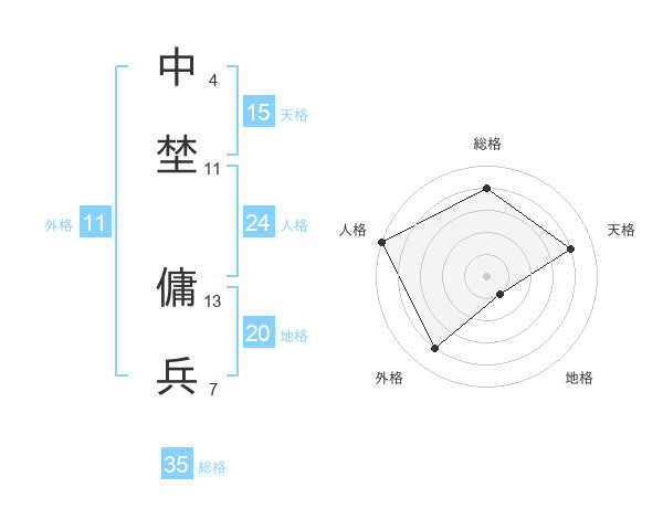 中埜 傭兵さんの総格は35画の4点!