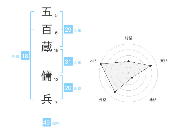 五百蔵 傭兵さんを姓名の画数から五運を鑑定
